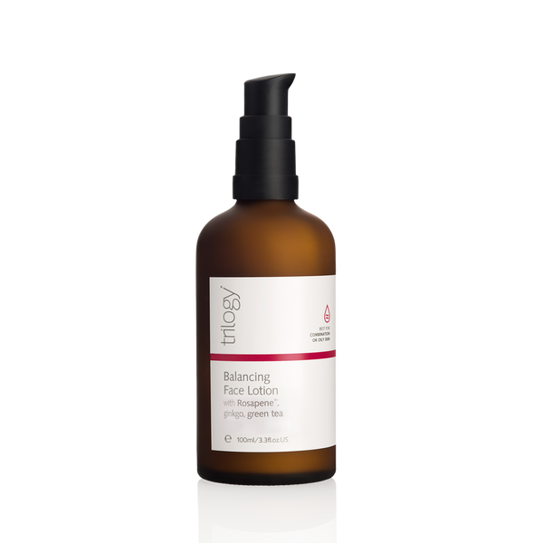 Trilogy's certified natural Balancing Face Lotion is a light day/night hydration lotion that works to replenish and balance combination and oily skin types.