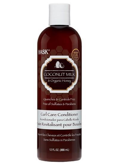 Hask Coconut Milk Curl Care Conditioner 355ml What’s the ultimate style guide for curly hair? HASK Coconut Milk & Organic Honey Curl Care Conditioner! Blended with moisture-rich coconut milk and nourishing organic honey, this formula locks in moisture and luster to help bring dehydrated curls back to life. Our frizz-proof Memory Curl Complex helps every curl bounce back to its unique curl pattern, whether your hair is wavy, curly or coily. Go ahead, celebrate your curls!
