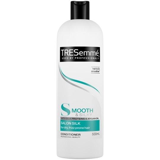 The TRESemmé Silky Smooth Shampoo and Conditioner system delivers moisture where your hair needs it most, calming frizz and flyaways without weighing hair down. This advanced smoothing system enriched with Moroccan argan oil cleanses and helps tame unruly hair, leaving it smooth and salon-soft. This hydrating conditioner is light enough for daily use.