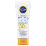 NIVEA® SUN Sensitive Protect Sunscreen Lotion SPF50 cares for your skin in more ways than one, combining broad spectrum sun protection whilst being suitable for sensitive skin. Highly effective UVA & UVB filters shield skin from sun damage. The non-greasy formula helps to soothe and calm reactive skin with Aloe Vera and Chamomile. Plus the formula with moisturising Vitamin E helps protect and repair the skin by keeping it hydrated resulting in it being less vulnerable to sun damage.