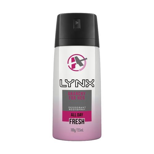 Anarchy for Her is the first and only female Body spray fragrance from LYNX. A bright, fruit fragrance, designed to keep ladies feeling confidently fresh all day long. Top fruity notes of pomegranate, apple, blueberry and kumquat. Followed by middle notes of violet, sage, cedar leaf, lavender and undertones of tobacco wood, sandalwood, white amber and coumarin. Compact enough to carry on the go, Anarchy For Her is the daily fragrance you can rely on and designed to give you confidence. All day long.