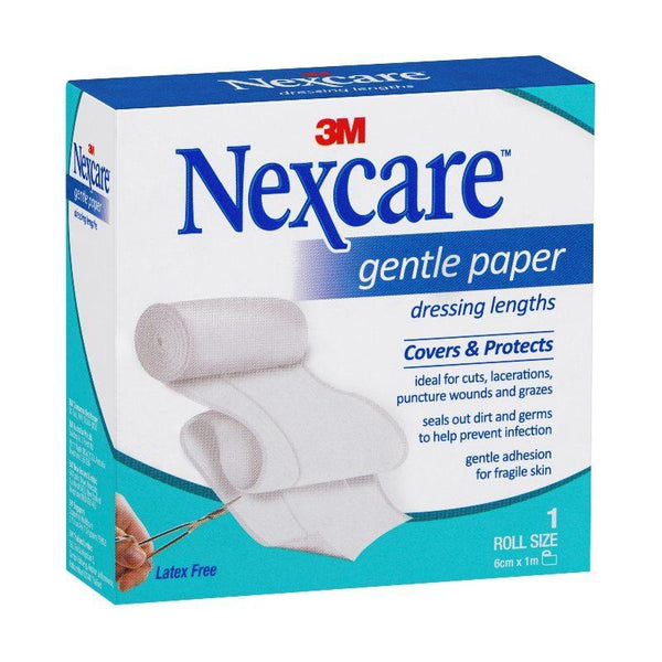 Nexcare™ Gentle Paper Tape Dressing Length is a general purpose dressing with gentle adhesion for fragile skin.