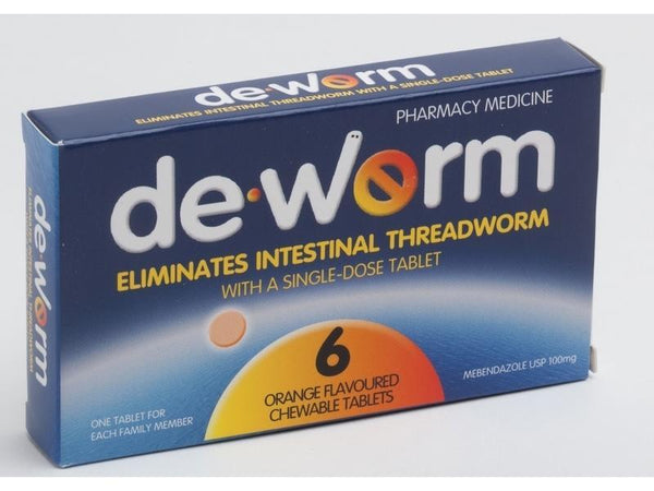 De.worm Tablets Orange Flavoured Chewable for Threadworm is highly contagious and is the only common worm infestation found in people in New Zealand and Australia. Threadworm infestation is evident by the presence of tiny white threads around the anal region. Other common symptoms include itching around the anus and the vagina, restless sleep, grinding teeth, and irritability. If one family member is found to have threadworms then every family member should be treated.