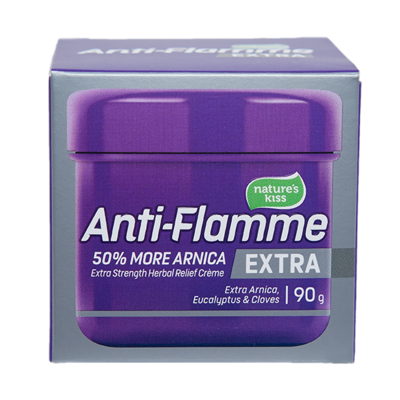 Nature’s Kiss Anti-Flamme Extra contains a carefully selected range of natural oils, chosen for their healing properties. Arnica oil, Calendula oil, Hypericum oil, Peppermint oil, Eucalyptus oil and Clove oil have been traditionally used in herbal practice to help soothe minor joint and muscle strains. Anti-Flamme Extra contains 50% more Arnica oil than Anti-Flamme Everyday for greater effectiveness.
