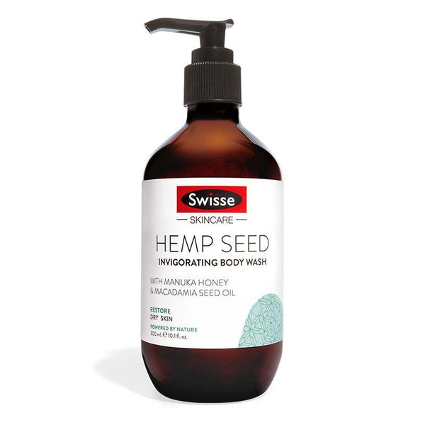 Swisse Hemp Seed Invigorating Body Wash is a plant-powered formula that helps cleanse, condition and revive the appearance of skin, with naturally-derived ingredients like raw, cold-pressed, 100% Australian Hemp Seed Oil, and Macadamia Seed Oil.