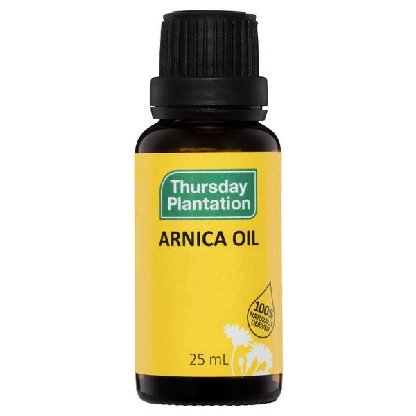 100% naturally derived Thursday Plantation Arnica Oil 25mL relieves pain & promotes bruise healing.